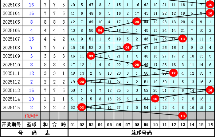 蓝球分析:旧年第116期蓝球奖号为03,开出0路蓝球,当今1路蓝球轮空2年,本年同时相宜柔柔1路蓝球回补,看好号码13。