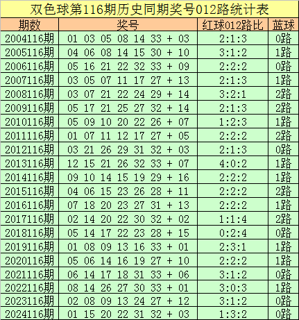 福彩双色球第2025116期历史同时王守礼012路奖号遗漏分析: